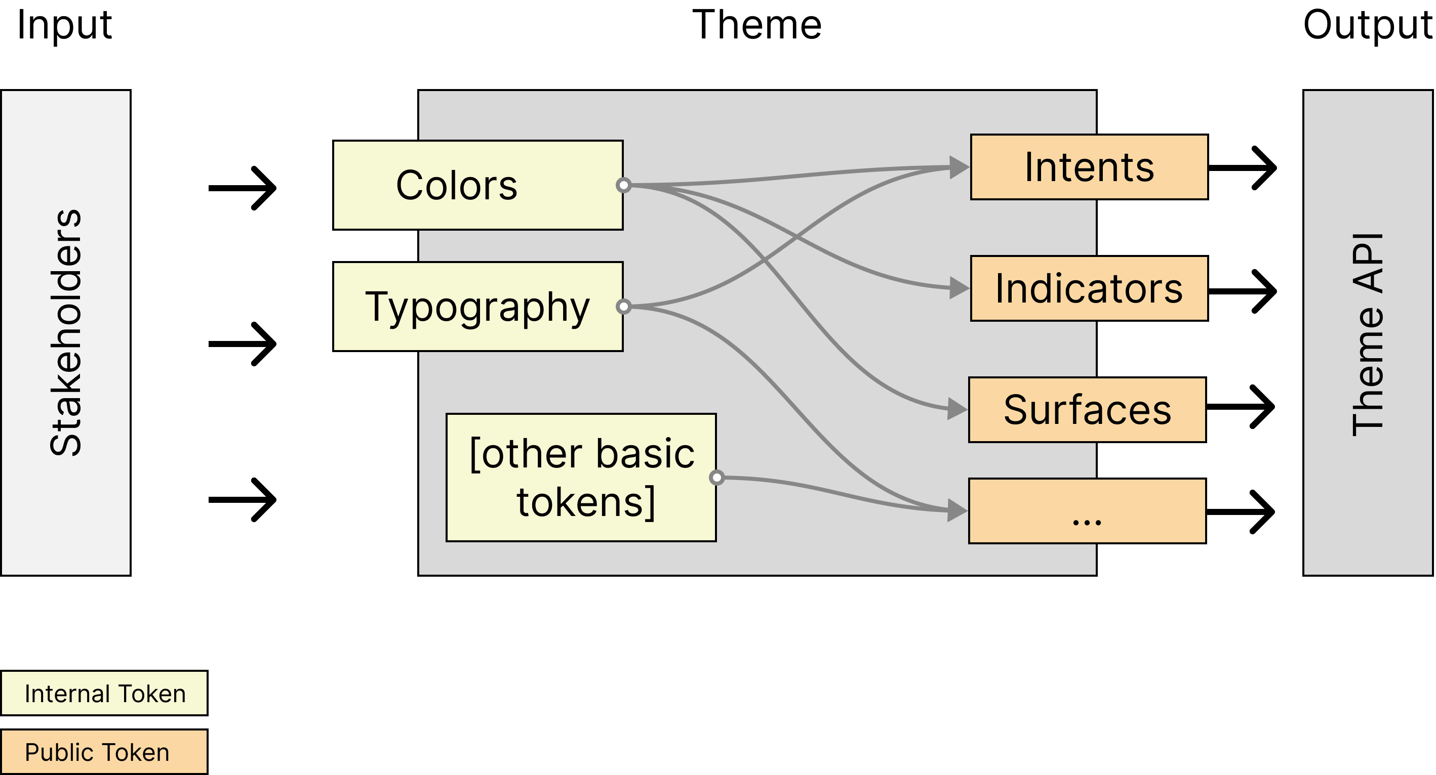 • A theme API is a contract between a product (token consumers) and a theme (token designers)